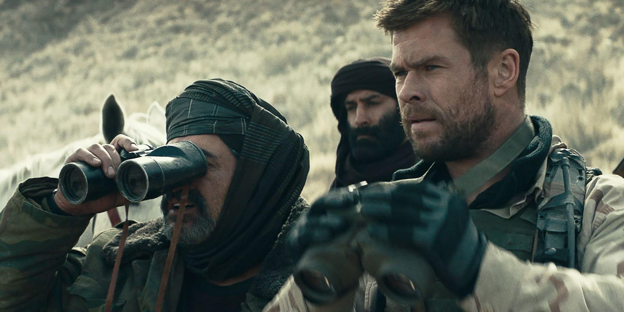 Tampoc millora massa el tractament que 12 Valientes fa dels personatges, i això que el títol posa el focus sobre ells de forma evident. Més enllà de les mostres de complicitat entre ells que inclou el film, és complicat arribar a establir-hi un vincle més o menys rellevant. Només cal recordar un títol com Corazones de Acero per a comprovar que no és tan complicat donar als personatges una personalitat i una dimensió particulars, per molt que la pel·lícula busqui acció bèl·lica sense més. Però a 12 Valientes sembla fer-li mandra aprofitar-ho per a treure una mica més de suc a allò que passa, o almenys per a implicar-nos amb els protagonistes. I això que Chris Hemsworth i Michael Shannon sempre asseguren una presència especial. Resulta un tant irònic que el personatge que més es fa escoltar sigui el del General Dostum, líder de l’Aliança del Nord afgana i aliat del grup de nord-americans.